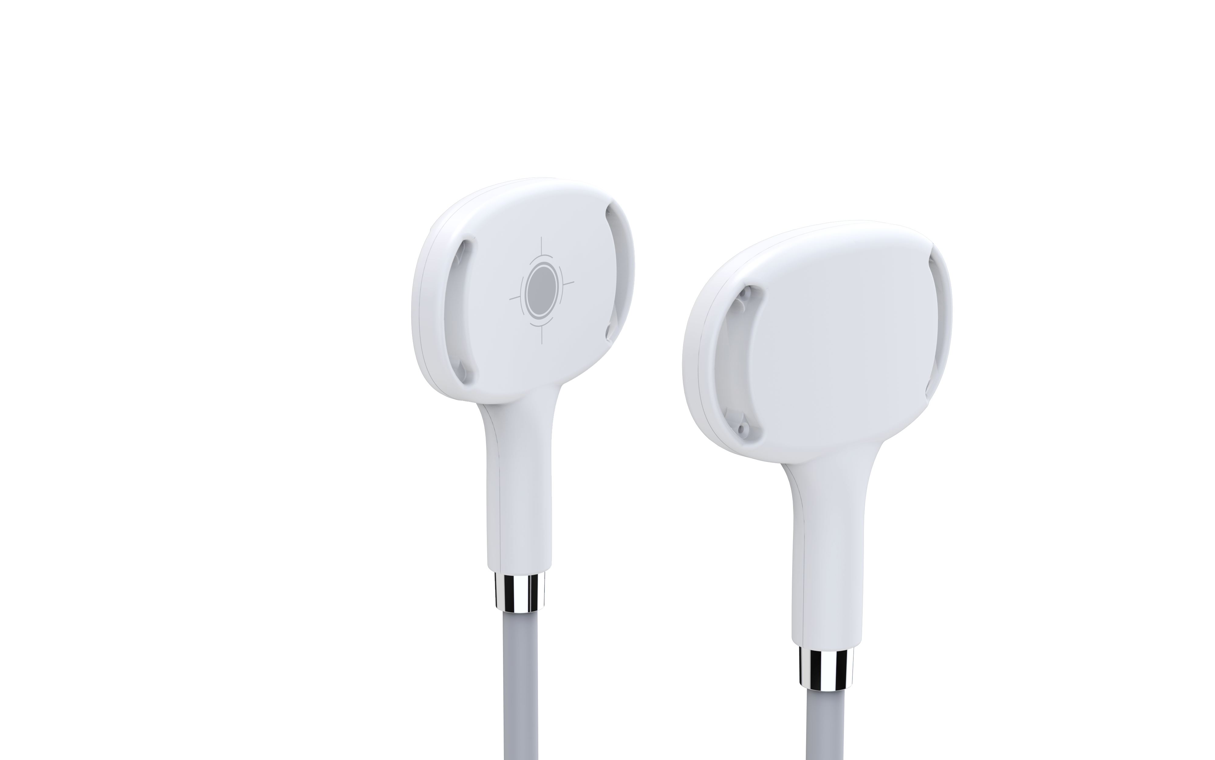Dual-shaped treatment heads for abdomen, hips, and other body parts.
